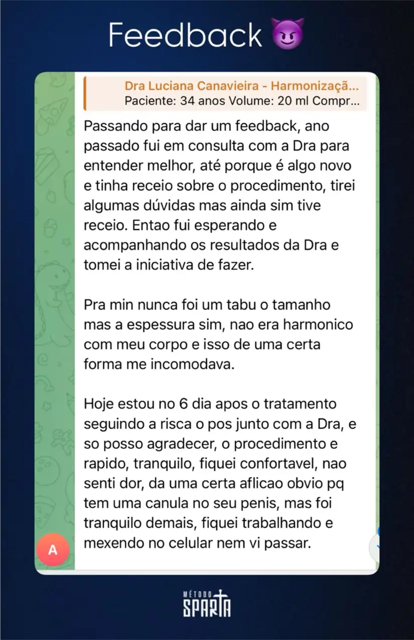 Cada homem tem sua própria batalha — e a Dra. Luciana criou o Método Sparta para transformar insegurança em poder. Com técnica, sigilo e resultados reais, ela devolve o que há de mais valioso: a confiança em si mesmo