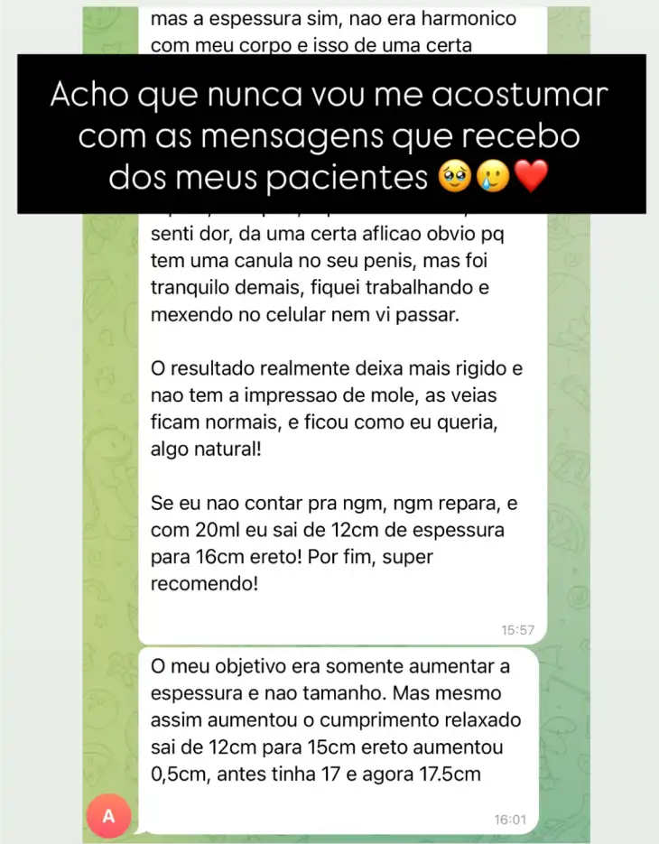 Reconhecida pela precisão técnica e compromisso com resultados naturais, ela é a única brasileira certificada pela técnica Androfill, em Londres, sob mentoria do Dr. Gary Horn, cirurgião urologista inglês considerado o “pai da harmonização peniana”.